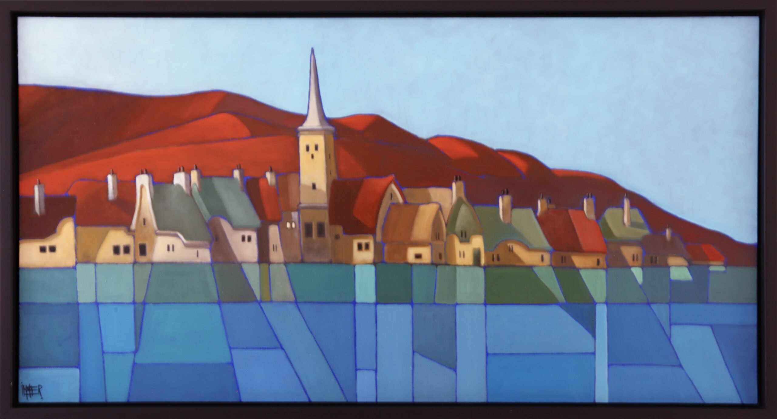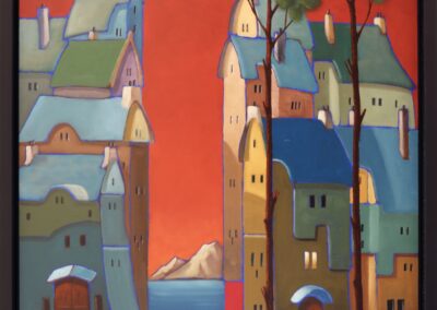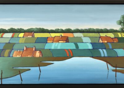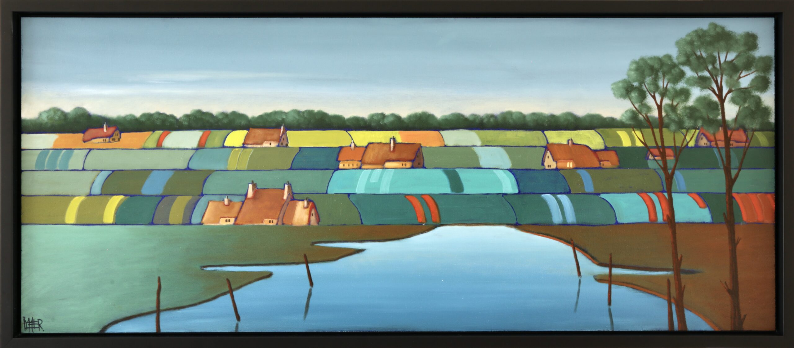 Huizen vol achtergelaten herinneringen; olieverf op paneel; 70×115 cm; luxe matzwarte baklijst met bolle rand; prijs 2100.– euro